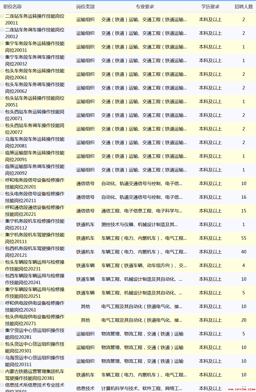 除信息技術(shù)崗位外,其他崗位應(yīng)聘畢業(yè)生在校期間所學(xué)專業(yè)須為鐵路專業(yè)方向或所學(xué)主要課程中包含鐵路專業(yè)課程,并且所學(xué)專業(yè)與招聘崗位需求一致,符合招聘崗位任職要求。