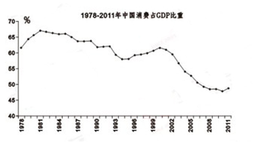 消費(fèi)、投資、出口是拉動(dòng)經(jīng)濟(jì)增長(zhǎng)的三駕馬車。其中,消費(fèi)又是最主要的馬車,是GDP增長(zhǎng)的主導(dǎo)因素。從國(guó)民經(jīng)濟(jì)統(tǒng)計(jì)的角度看,最終消費(fèi)包含兩部分,一部分是居民消費(fèi);另一部分是政府消費(fèi)。有學(xué)者對(duì)1999——2008年我國(guó)31個(gè)省(市、自治區(qū))的相關(guān)數(shù)據(jù)進(jìn)行了分析,實(shí)證表明,從全國(guó)范圍來看,無論是城鎮(zhèn)、農(nóng)村居民消費(fèi)還是政府消費(fèi)對(duì)經(jīng)濟(jì)增長(zhǎng)的影響都是顯著的,但三者對(duì)經(jīng)濟(jì)增長(zhǎng)的拉動(dòng)程度不同,城鎮(zhèn)、農(nóng)村居民消費(fèi)和政府消費(fèi)每增長(zhǎng)1個(gè)單位,分別可以促進(jìn)經(jīng)濟(jì)增長(zhǎng)0.59、0.49和0.23個(gè)單位。從我國(guó)居民消費(fèi)占GDP的比重來看,近十年來不升反降,僅為35%,而世界其他主要經(jīng)濟(jì)中心,這個(gè)數(shù)字都大于50%,歐洲是58%,日本是55%,美國(guó)高達(dá)72%。而自1978年以來,我國(guó)政府消費(fèi)在最終消費(fèi)中的占比幾乎每隔10年就要上一個(gè)臺(tái)階:80年代大約穩(wěn)定在21%——23%;90年代上升并穩(wěn)定在24%——25%;2000——2010年進(jìn)一步提高到26%——27%;2011年已爬上28%。在1978——2011年的34年中,有22年政府消費(fèi)的增速高于居民消費(fèi)。